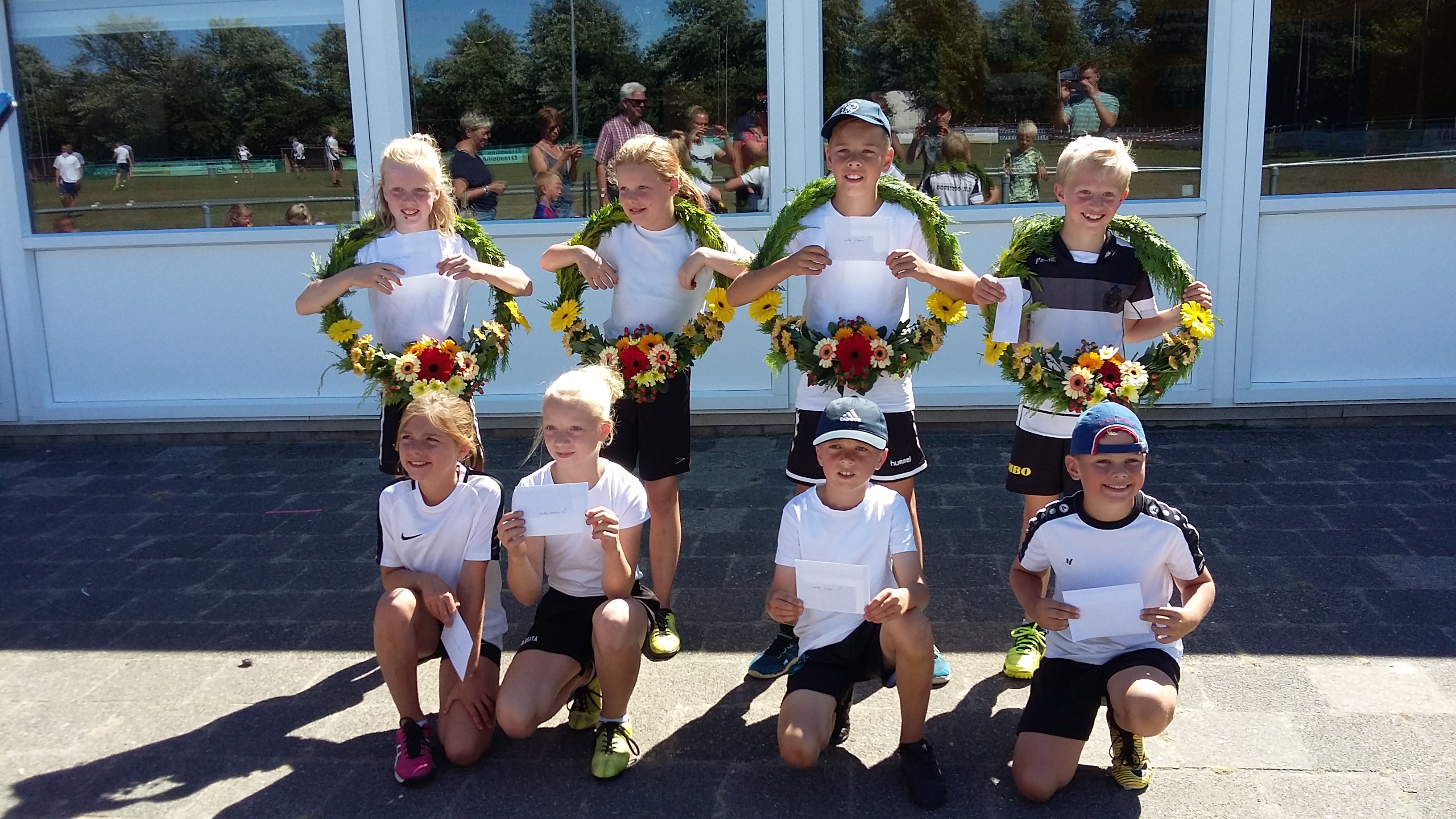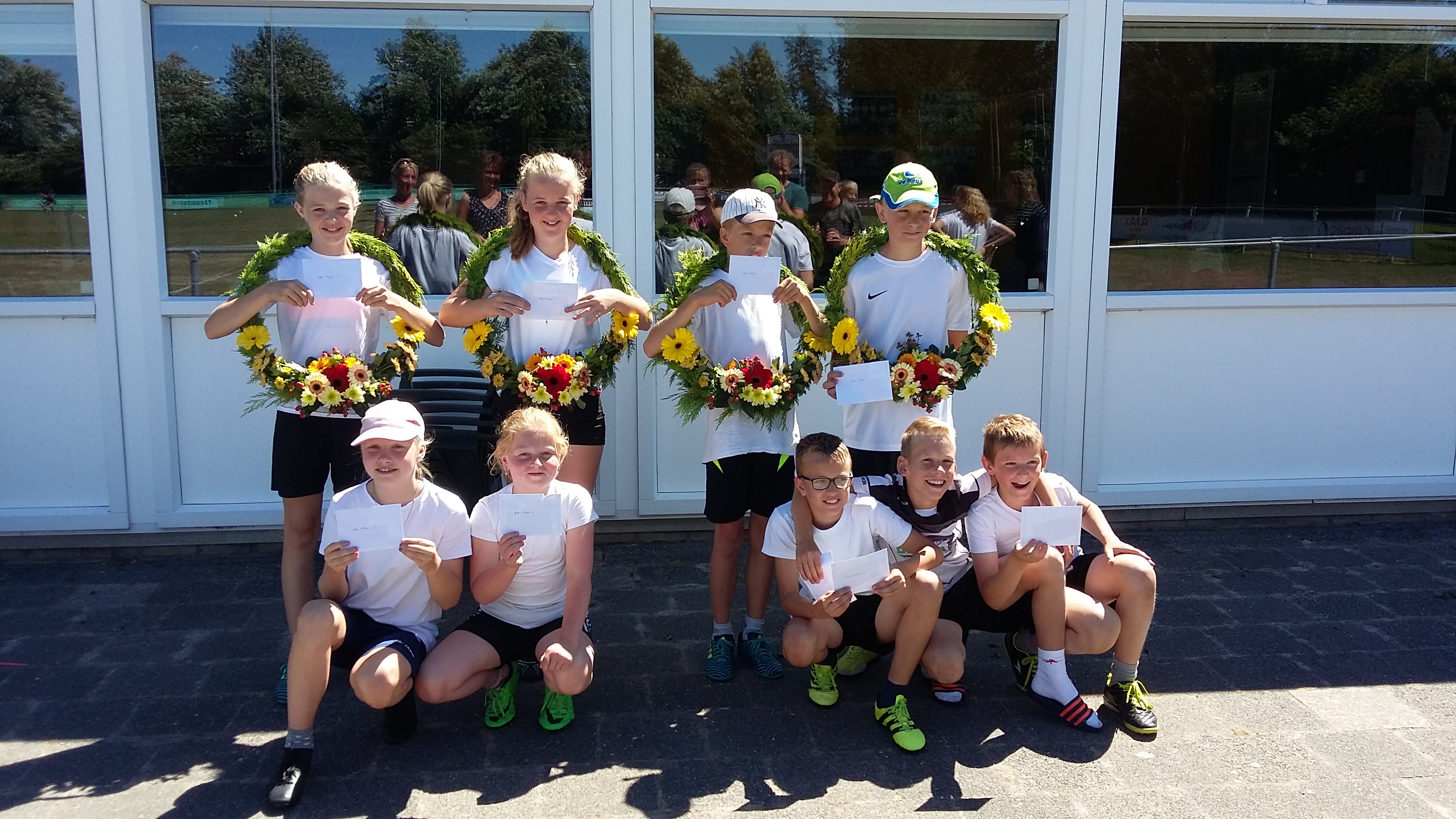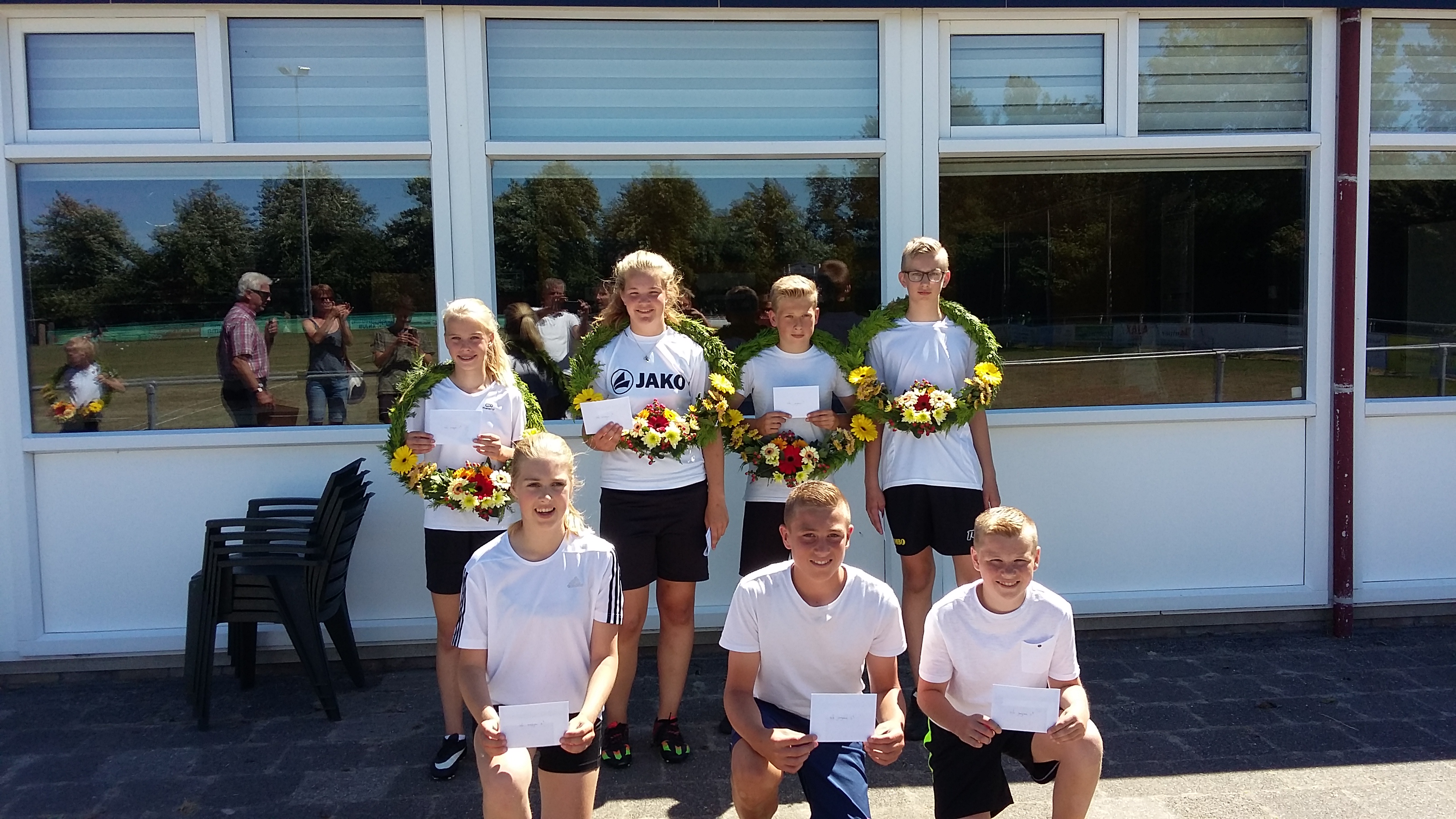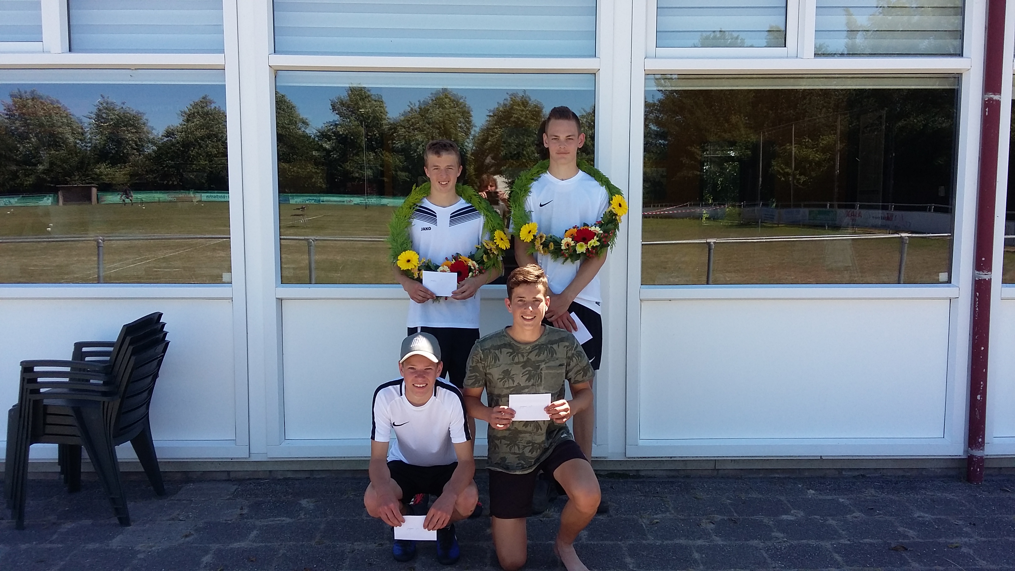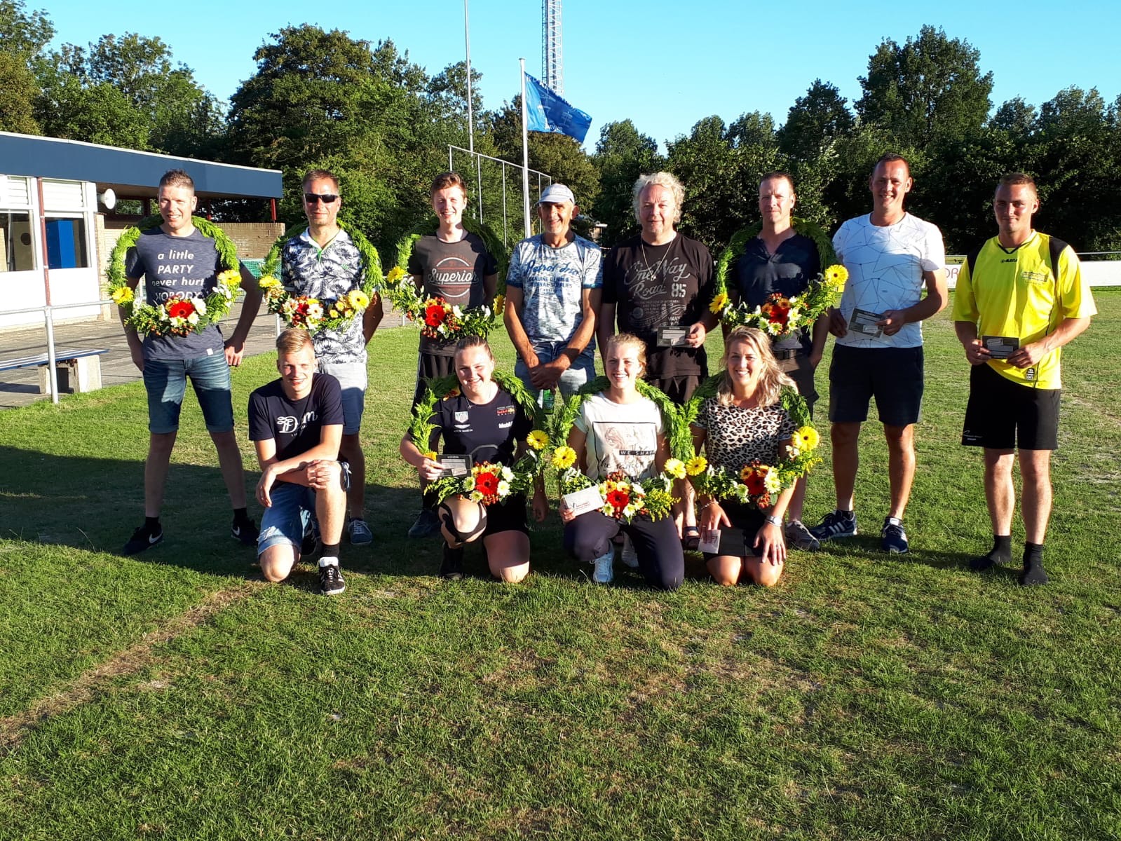 Door het vele kaatsen waren er verschillende tenues versleten; gelukkig zijn er sponsoren bereidt gevonden om nieuwe broekjes en shirts te sponsoren. Zaterdag zijn deze vastgelegd op de foto`s. Wij willen onze sponsoren hier hartelijk voor bedanken. Dit zijn; Café De zwarte Arend Paesens, DEM bv te Rinsumageest, Bistro De koffiebranderij te Dokkum en DW Multi Tech Service te Oosternijkerk.
